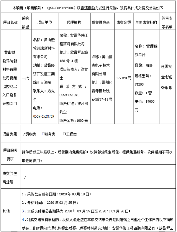 上一篇:黃山徽投鴻瑞新材料有限公司地磅系統(tǒng)采購(gòu)項(xiàng)目成交結(jié)果公告