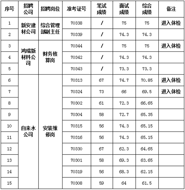 黃山徽投集團(tuán)下屬子公司招聘員工面試工作已于2020年3月29日結(jié)束,現(xiàn)將面試成績(jī)及最終綜合成績(jī)公布如下: