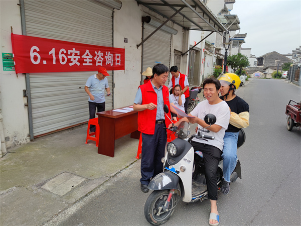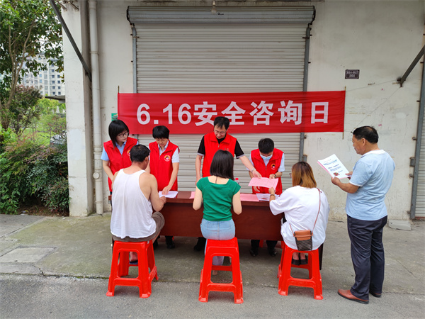 一大早,大家穿起紅馬甲,準(zhǔn)時(shí)來到古溪安置區(qū),在小區(qū)的主入口,拉起“6.16安全咨詢?nèi)铡睓M幅,抬出小桌子,擺上各類安全知識(shí)宣傳資料。活動(dòng)緊緊圍繞“遵守安全生產(chǎn)法 當(dāng)好第一責(zé)任人”的主題,對(duì)來來往往的小區(qū)居民發(fā)放宣傳冊,還上門入戶發(fā)放防汛、防火、防詐騙等一封信和現(xiàn)場接受居民的安全知識(shí)咨詢,現(xiàn)場為小區(qū)居民耐心講解關(guān)于安全防汛、防災(zāi)減災(zāi)、消防安全、防電信網(wǎng)絡(luò)詐騙、安全生產(chǎn)十五條措施等安全防范知識(shí),整個(gè)活動(dòng)共計(jì)發(fā)放宣傳手冊300余份。