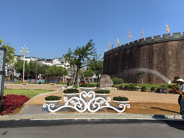 按照“喜慶、靚麗、節(jié)儉”的原則,截止到目前,鮮花總更換量為2萬余株,打造出“整潔、優(yōu)美、喜慶”的城市環(huán)境,以營造國慶氛圍。