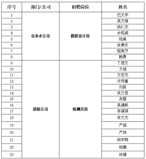 黃山市徽城投資集團(tuán)有限公司招聘員工的報(bào)名和資格初審工作現(xiàn)已全部結(jié)束,根據(jù)集團(tuán)2021年7月13日發(fā)布《黃山市徽城投資集團(tuán)有限公司招聘公告》,經(jīng)初審,巴文宇等33人資格初審合格,現(xiàn)予以公布。具體人員名單如下: